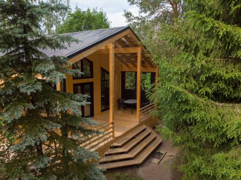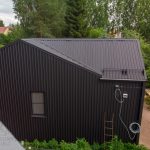 • Наружная отделка внешних стен и фронтонов. 1.Металлический профнастил GL-C20А, толщиной 0.50мм, цвет- 7024(темно-серый) PE Satin. 2. Доска отделочная с прямым профилем 20*140*6000 камерной сушки (планкен).