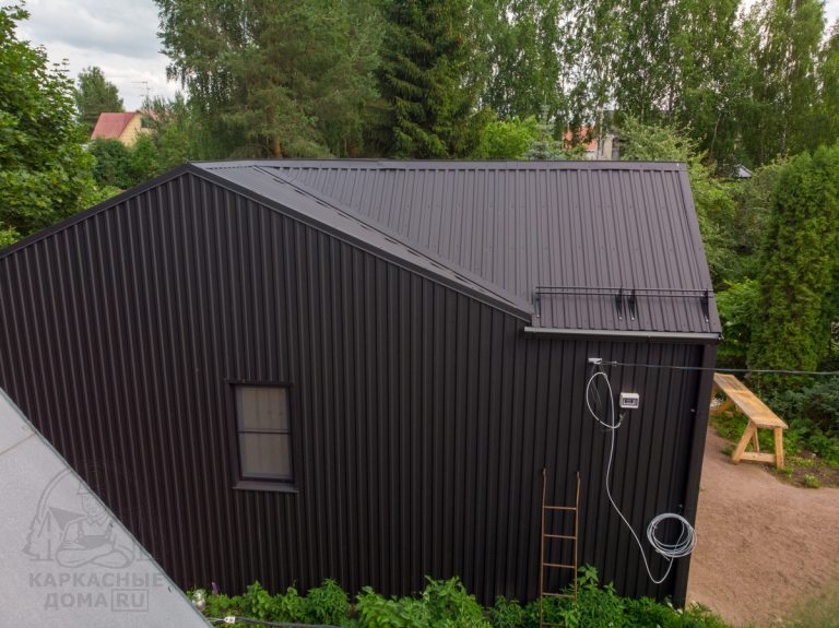 • Крыша, прямая, двухскатная, трехфронтонная. Металлический профнастил GL-C20А, толщиной 0.50мм, цвет- 7024(темно-серый) PE Satin, с доборными элементами. Производство Россия. На кровле террасы смонтирован поликарбонад монолитный WOGGEL, толщиной 4 мм с метизами и соединительными планками.
