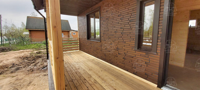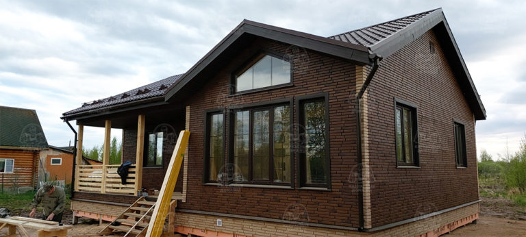 Наружная отделка - ветрозащитные плиты ISOPLAAT, толщиной 12 мм. Затем, через контробрешетку, смонтированы панели ПВХ Docke KLINKER (Калахари), Docke KLINKER (Каракумы).