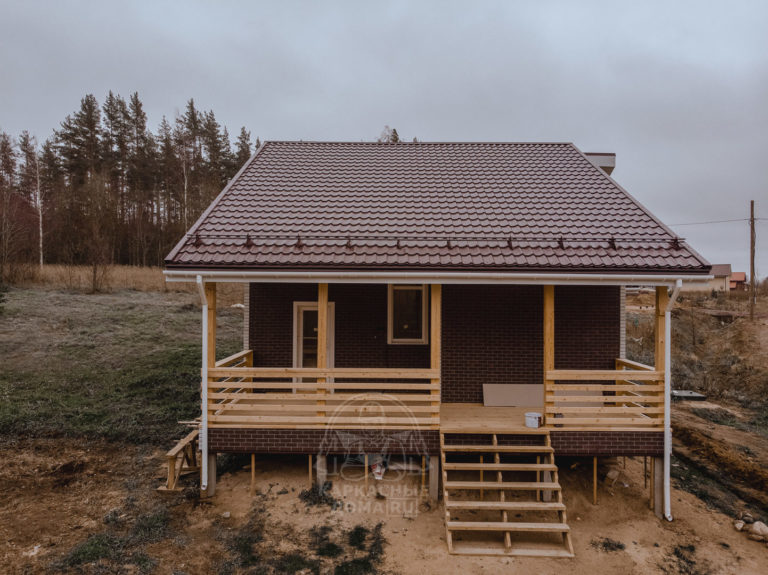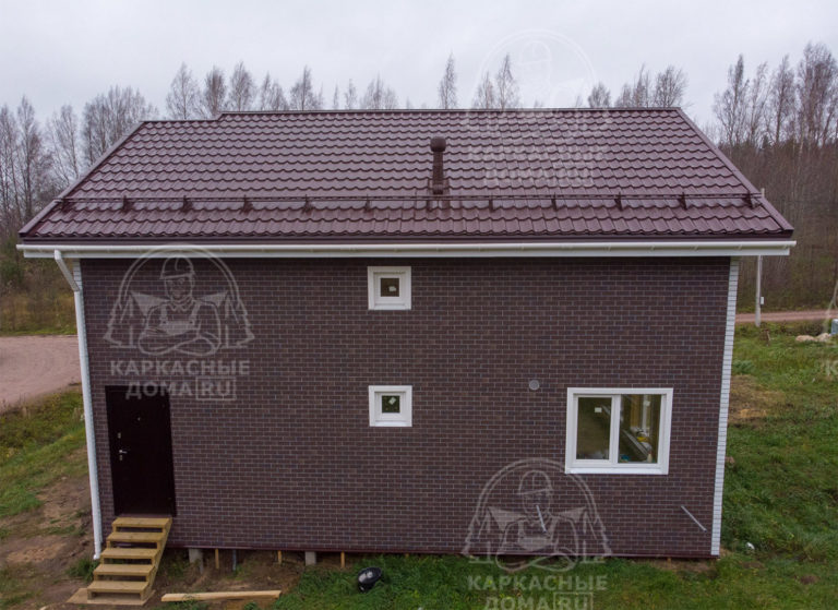 - Двухскатная крыша. Кровельный материал- Металлочерепица «Супермонтеррей», толщиной 0,45 мм, цвет- RAL 8017, коричневый с доборными элементами. Производство «Grand Line», Россия.